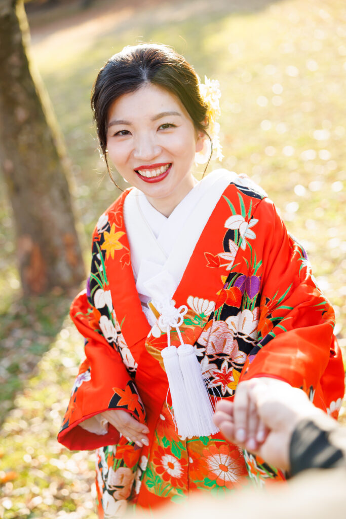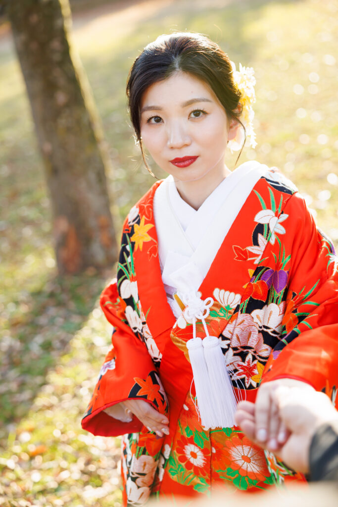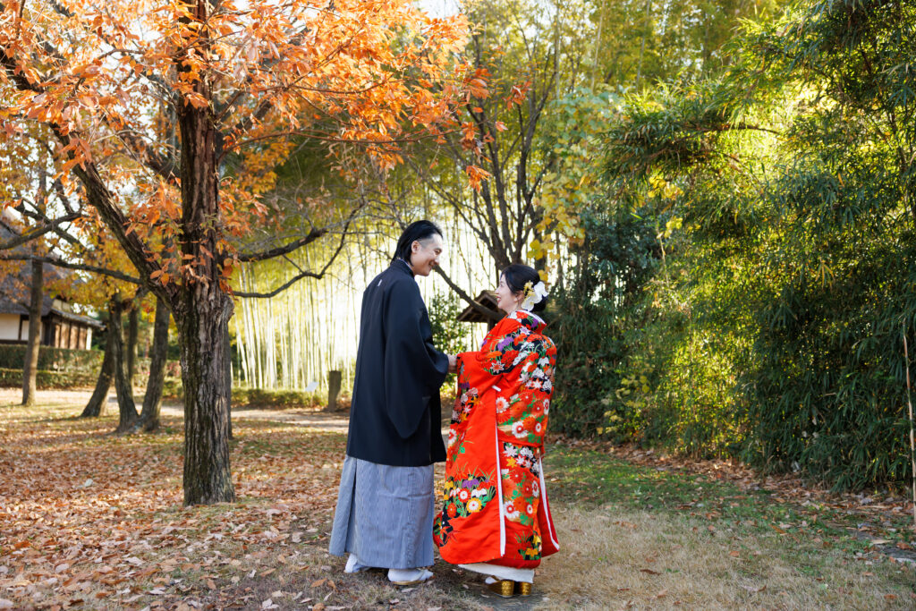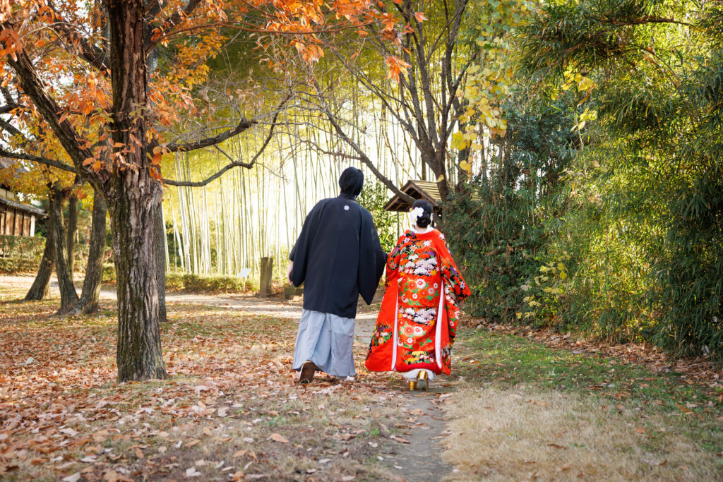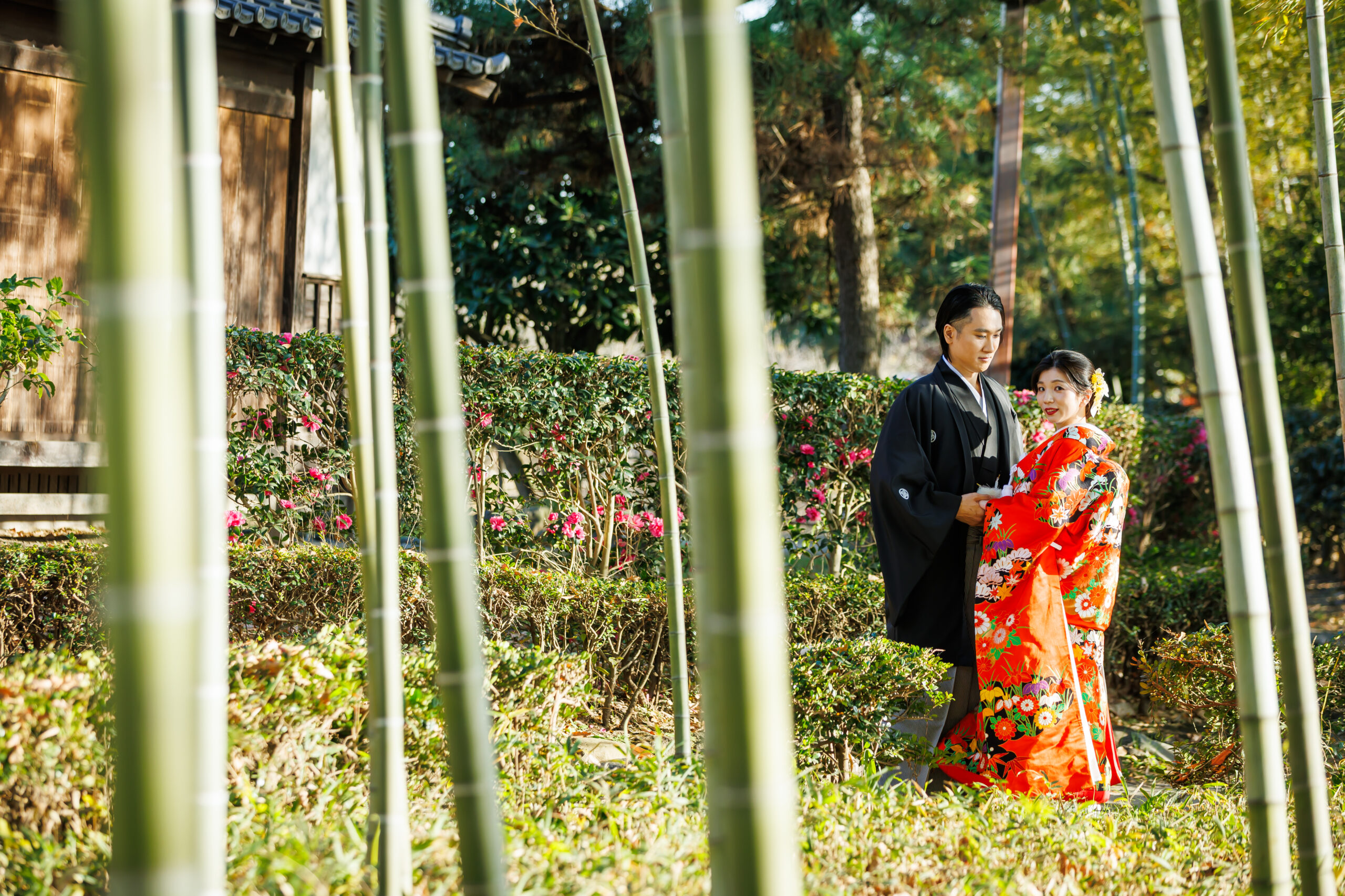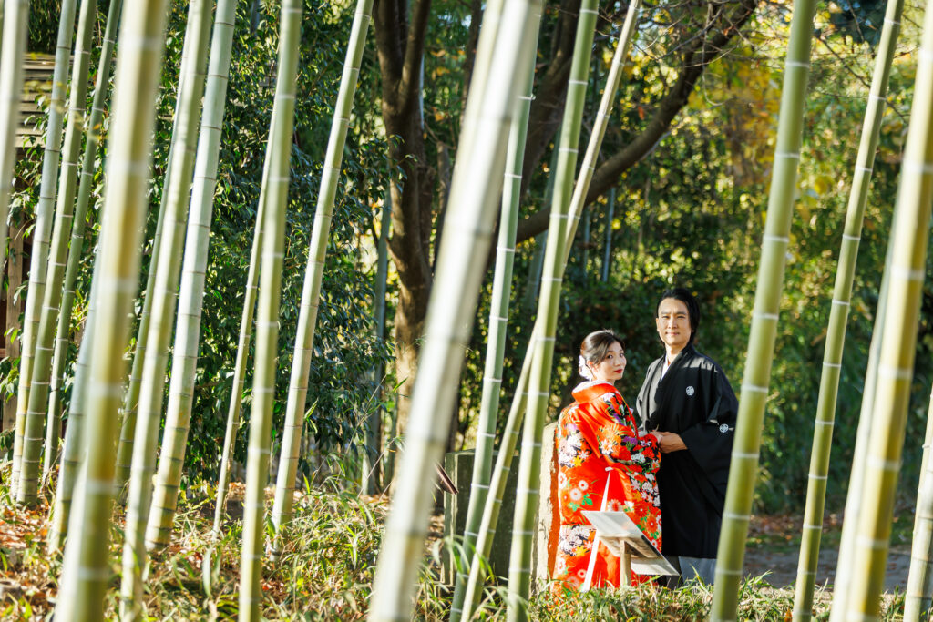 朱赤の打掛に映える青竹。