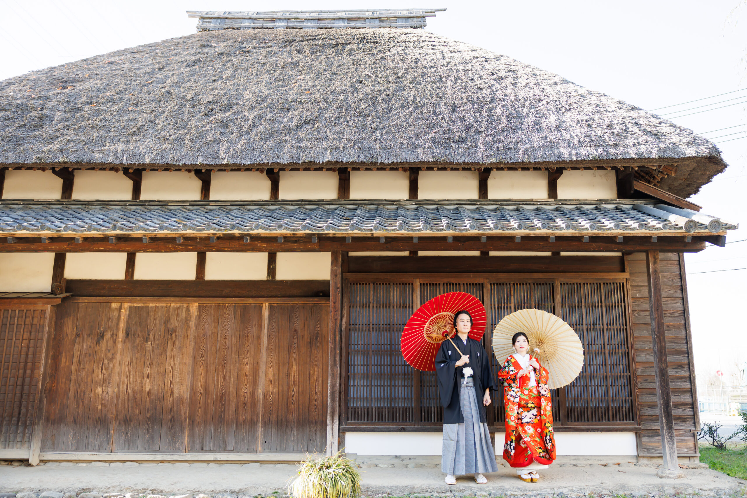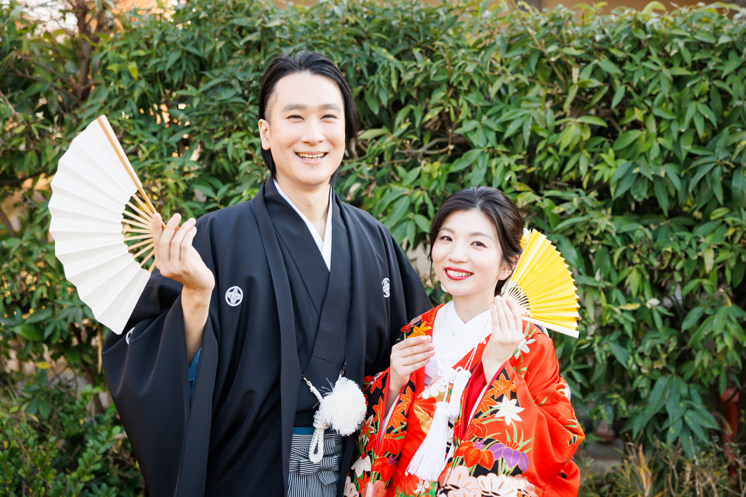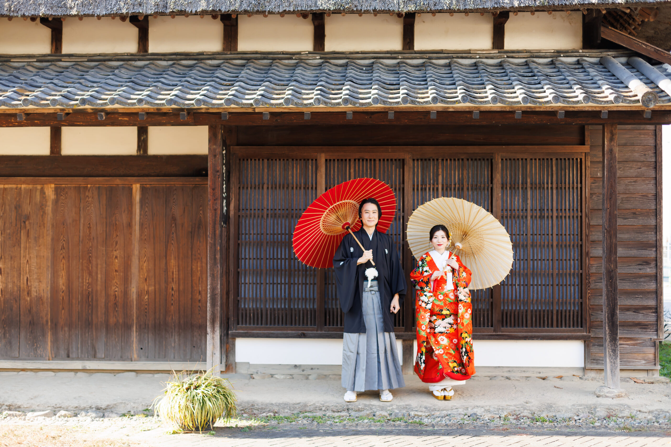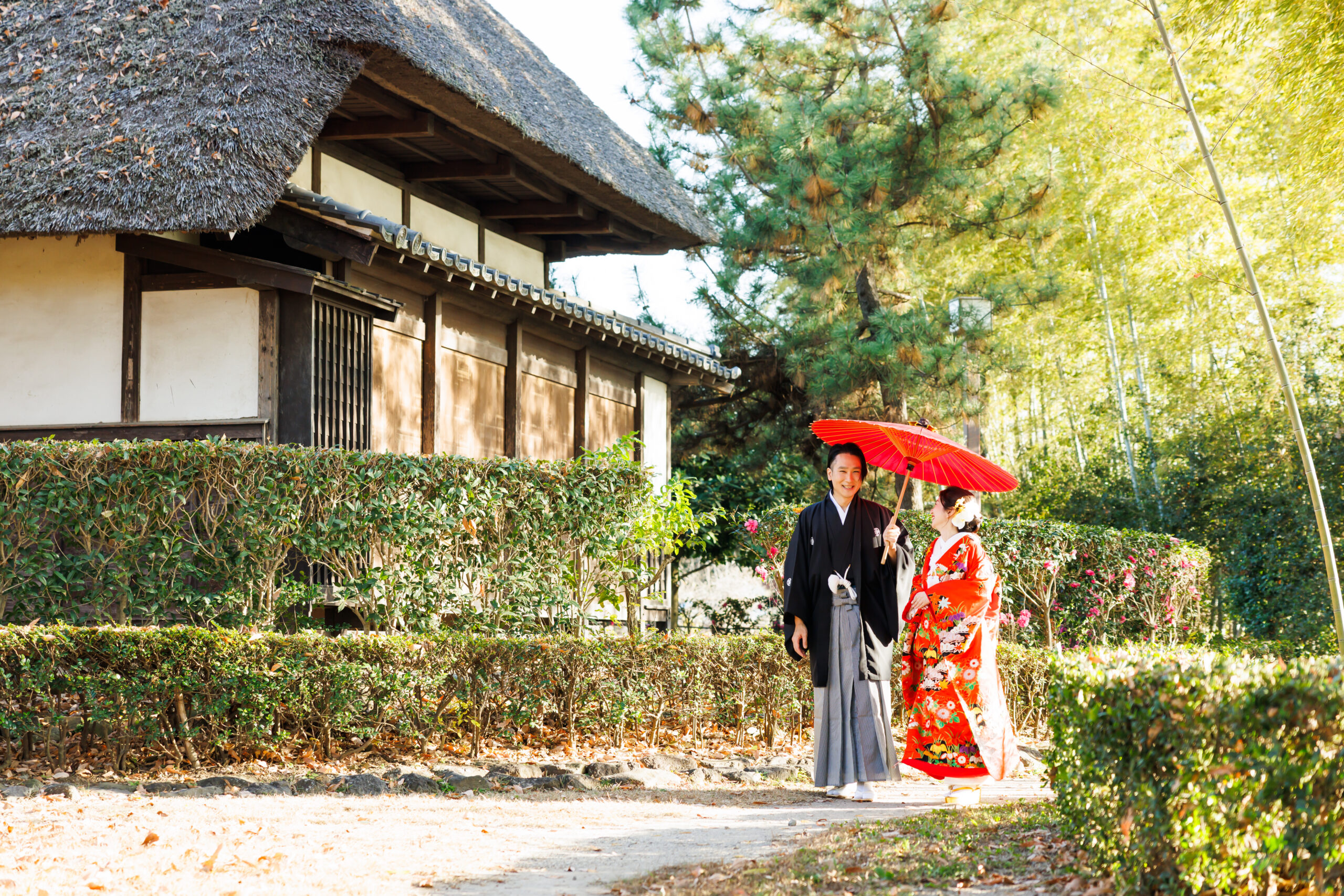 朱赤の打掛に映える青竹。